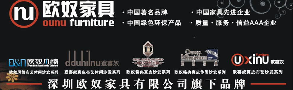 | 公 司 简 介 深圳欧奴家具有限公司是一个具有专业化、现代化、规模化、系列化生产家具企业。公司旗下拥有《欧奴风情》、《欧奴铭典》、《欧奴君典》、《欧喜奴》、《登喜奴》等五个软体家具品牌。 随着人们生活方式的转变,什么样的家居生活才能体现现代人的生活方式,成为现代家居设计制造者的创新课颗•••••• 深圳欧奴家具引领中国家居生活发... |